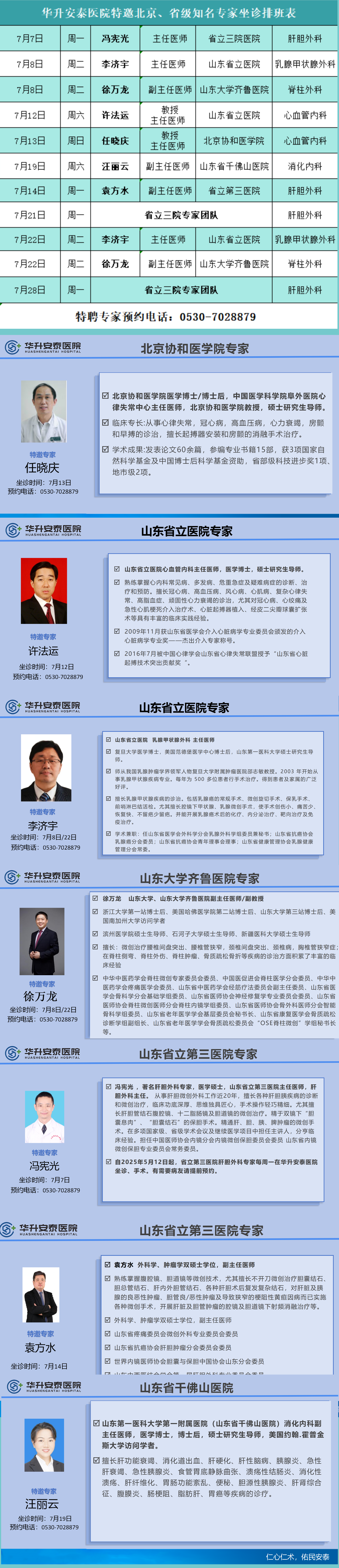 华升安泰医院7月份特邀北京、省级专家坐诊信息!