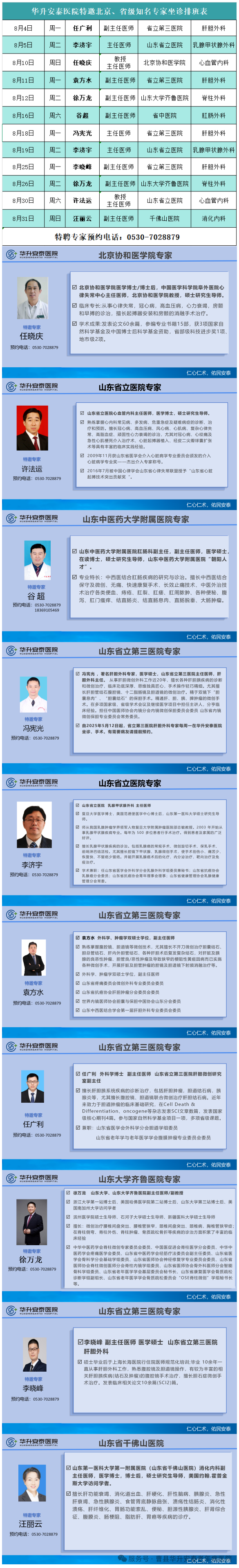 【专家门诊】8月份北京、省级专家坐诊信息!