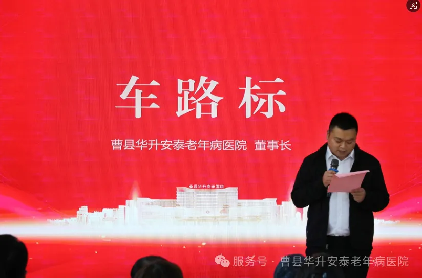 华升安泰医院董事长车路标先生在随后的致辞中,重申了医院“以患者为中心”的核心理念。他详细阐述了一年来医院在技术提升、人才引进和服务优化方面的努力,并指出,康养中心的启用是医院战略布局的关键一步,旨在满足群众日益增长的多元化健康需求,为区域医养事业发展贡献新的力量。
